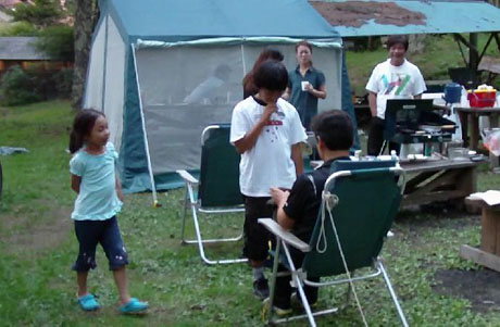 先生たちは私たちの充実したキャンプ用品に驚愕。アウトドアーに目ざめて10余年。用具はその間にコツコツと集め、今は快適なオートキャンプが出来るまで一通りは揃ってきました。