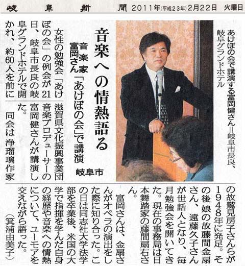 2月21日と22日岐阜市の「あけぼの会」の皆様の例会に講師として招かれ、講演会をさせていただきました。